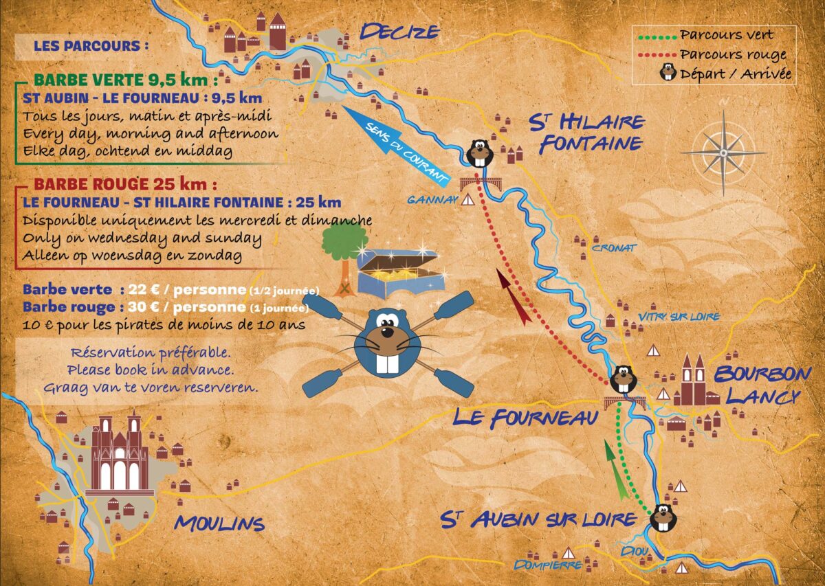 Pour le départ du parcours vert : rendez-vous à saint aubin sur Loire, suivez la direction bord de Loire. Vous nous trouverez très facilement.