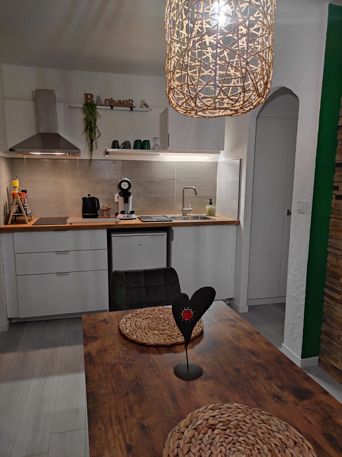 Il y a une cuisine équipée ouverte sur le salon coin télé  »TNT » connectée pour vos comptes Netflix, prime,……